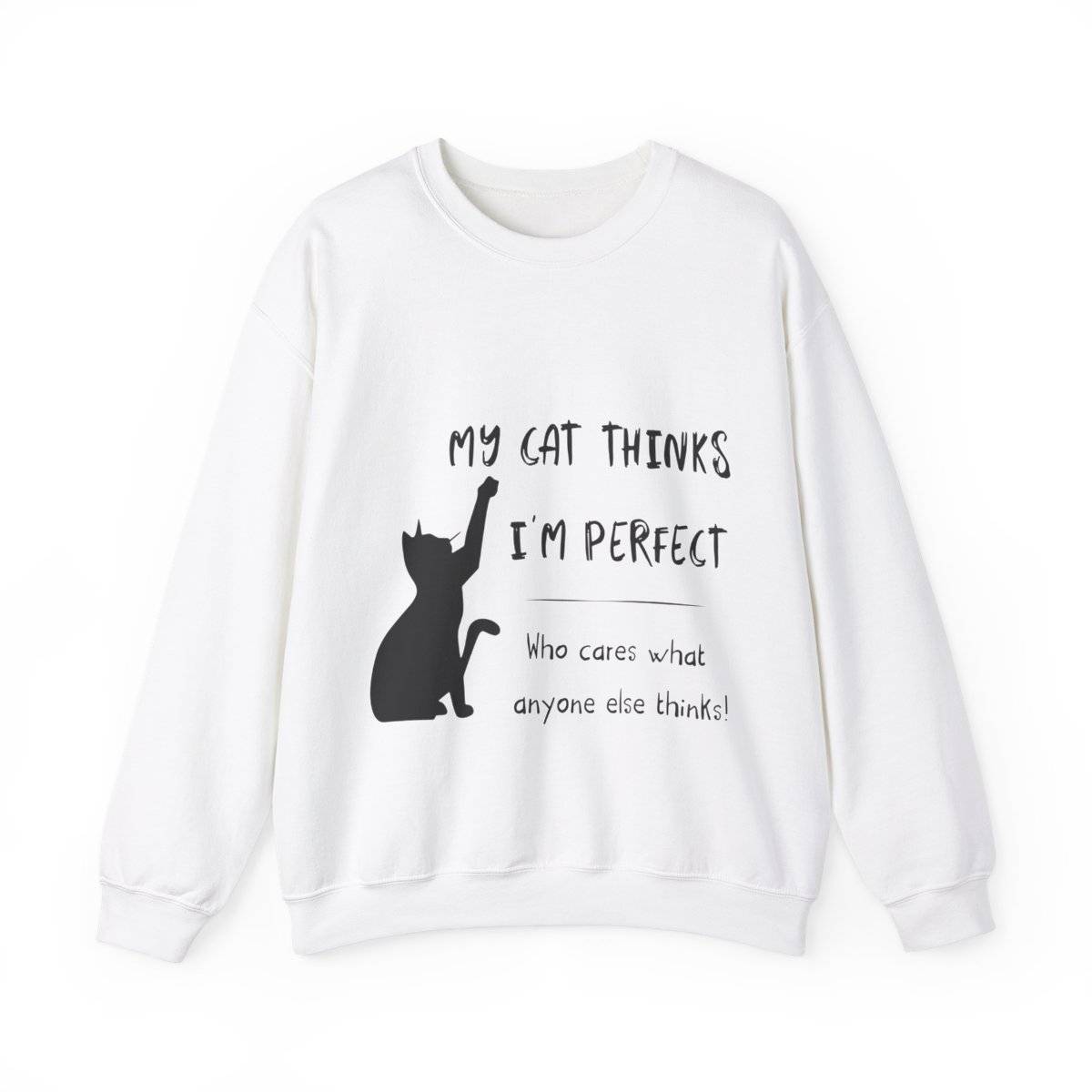 Sweat unissexo sem capuz com um toque de humor para quem adora os nossos amigos de quatro patas, com a frase “My Cat thinks I’m perfect”. Feita de malha Jersey de 100% de algodão macio, decote redondo e com uma estampagem de qualidade.