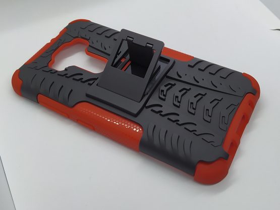 Proteja o seu smartphone com esta capa anti-choque, vem com um suporte incorporado para que possa assistir comodamente a vídeos.