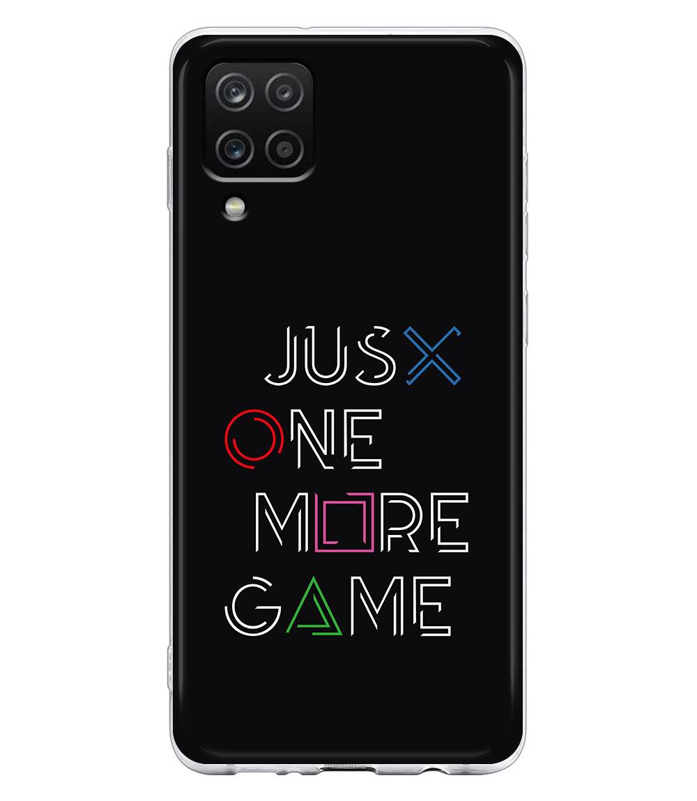 Capa de telemóvel em silicone para Samsung A12 com frase Just One More Game, dedicada aos gamers.