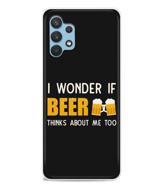 Capa de telemóvel em silicone para Samsung A13 4G com a frase I wonder if beer thinks about me too, ideal para quem adora uma boa cerveja