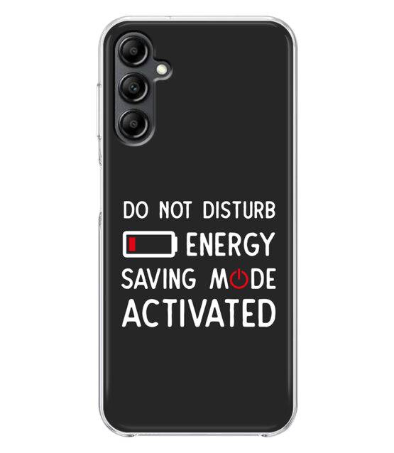Capa de telemóvel em silicone para Samsung A14 (4G / 5G) com a frase Do not disturb, energy saving mode activated.