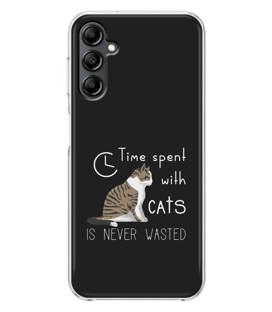 Capa de telemóvel em silicone para Samsung A14 (4G / 5G) com a frase Time spent with cats is never wasted