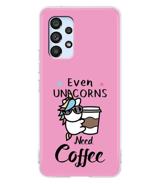 Capa de telemóvel em silicone para Samsung A52 / Samsung A52s “Even unicorns need coffee” de um unicórnio com café.