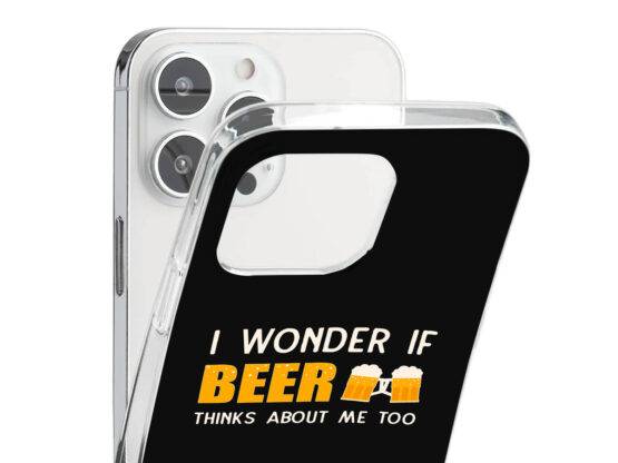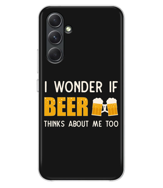 Capa de telemóvel em silicone para Samsung A54 5G com a frase I wonder if beer thinks about me too, ideal para quem adora uma boa cerveja