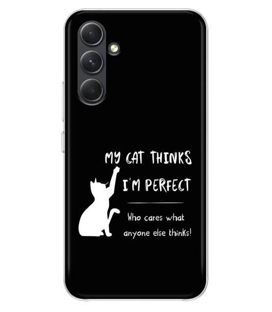 Capa de telemóvel em silicone para Samsung A54 5G com a frase My cat thinks I’m perfect, who cares what anyone else thinks!