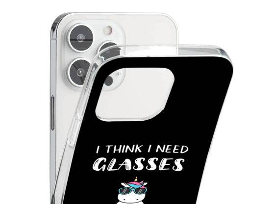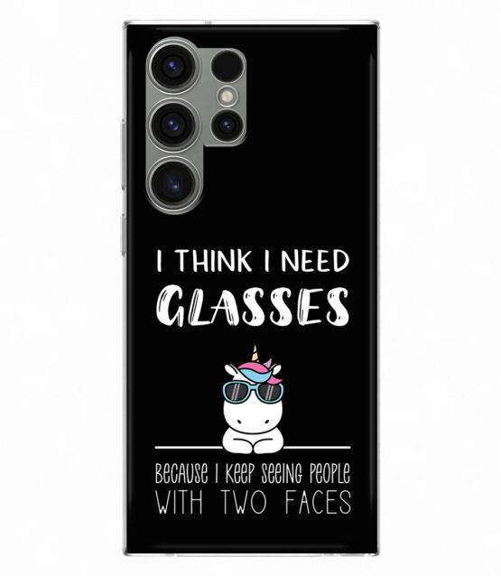 Capa de telemóvel em silicone para Samsung S23 Ultra “I think I need glasses, because I keep seeing people with two faces”, unicórnio com óculos de sol.