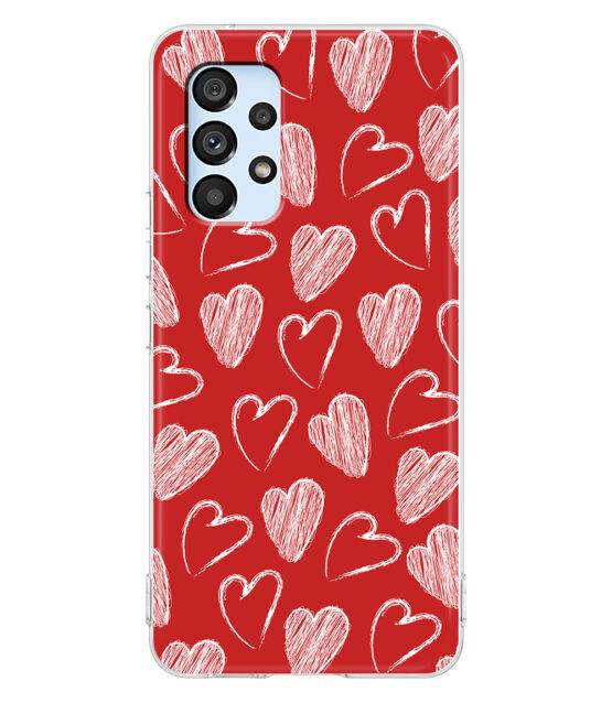Capa de telemóvel em silicone para Samsung A52 / Samsung A52s , com corações brancos sob fundo vermelho .