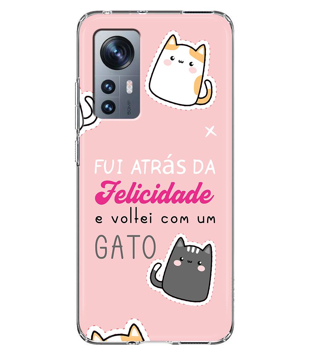 Capa de telemóvel em silicone para Xiaomi 12 / 12X com a frase Fui atrás da felicidade e voltei com um gato