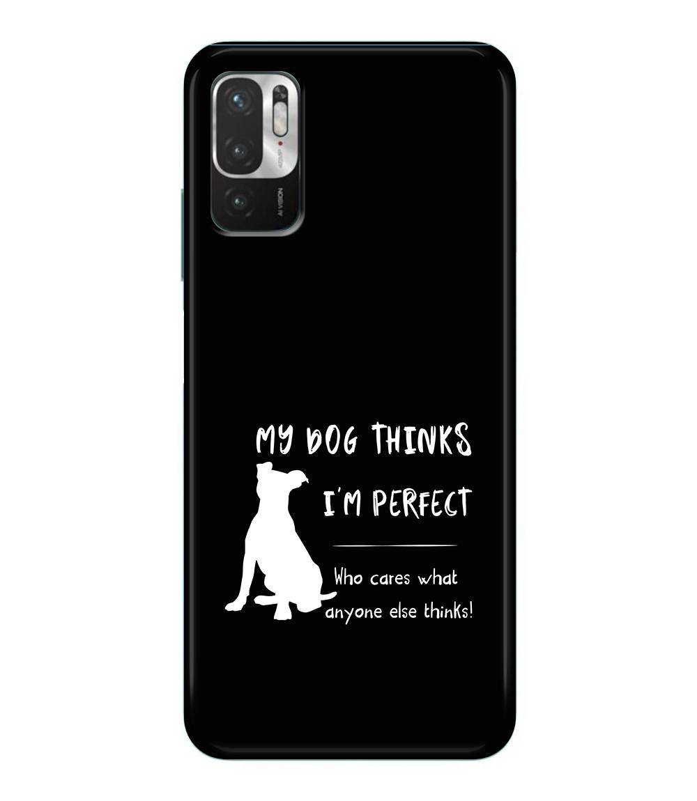 Capa de telemóvel em silicone para Xiaomi Redmi Note 10 5G / Poco M3 Pro com a frase My dog thinks I’m perfect, who cares what anyone else thinks!