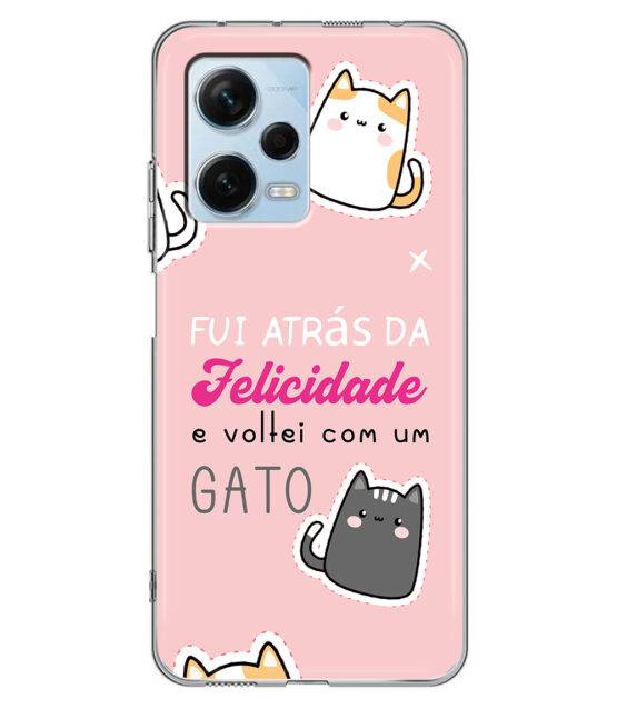 Capa de telemóvel em silicone para Xiaomi Redmi Note 12 Pro 5G com a frase Fui atrás da felicidade e voltei com um gato