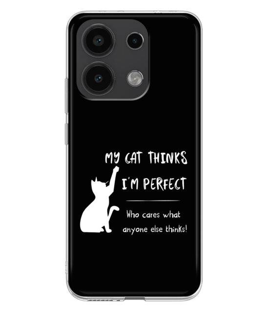 Capa de telemóvel em silicone para Xiaomi Redmi Note 13 4G com a frase My cat thinks I’m perfect, who cares what anyone else thinks!
