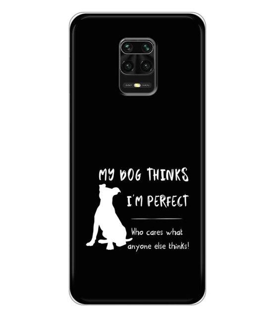 Capa de telemóvel em silicone para Xiaomi Redmi Note 9 Pro / 9S / 9 Pro Max com a frase My dog thinks I’m perfect, who cares what anyone else thinks!